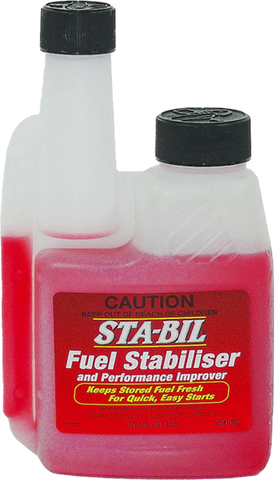 Treating your fuel with STA-BIL keeps it fresh for up to 12 months and stops the formation of gum and varnish deposits within the fuel system. It contains corrosion prevention additives to fight against the damaging effects of Ethanol in fuel and also cleans fuel system components such as fuel injectors and carburetors.